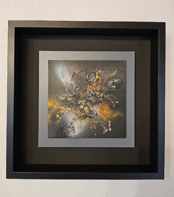 L'encadrement est noir de style caisse Américaine et mesure 37x37 cm